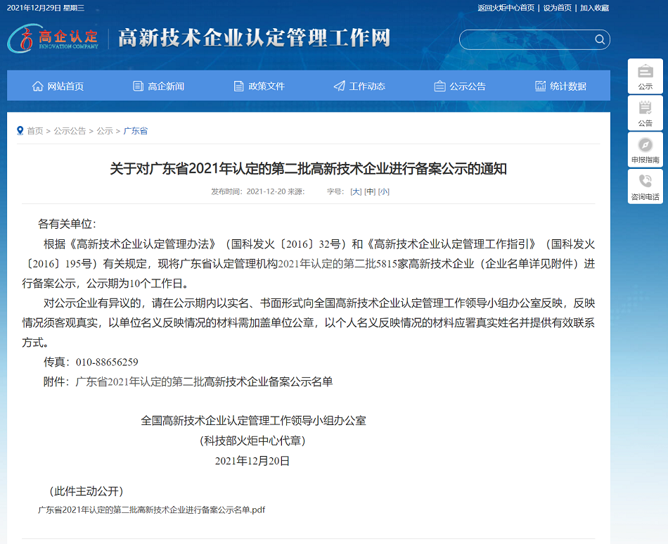 悅亮科技上榜廣東省2021年認定的第二批高新技術企業(yè)備案公示名單
