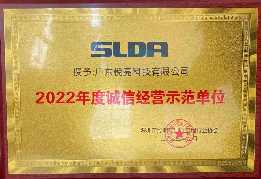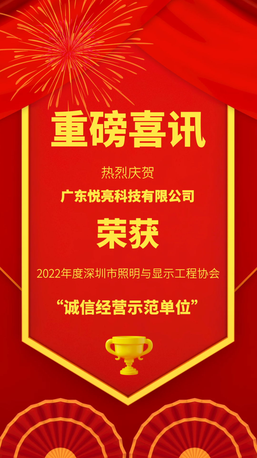 喜訊 廣東悅亮科技榮獲深圳市照明與顯示工程協(xié)會(huì)2022年度誠信經(jīng)營示范單位評(píng)定