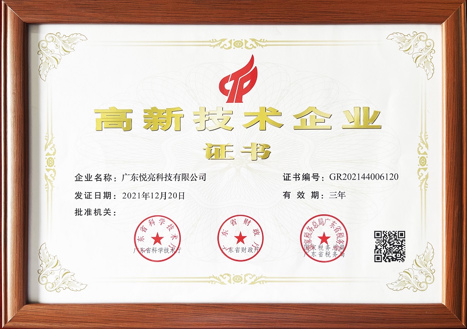 廣東悅亮-高新技術(shù)企業(yè)證書