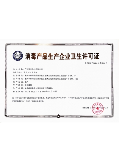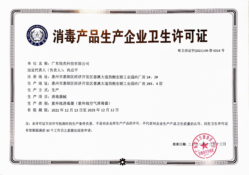 廣東悅亮-消毒產(chǎn)品生產(chǎn)企業(yè)衛(wèi)生許可證