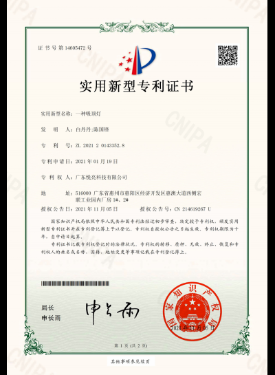 廣東悅亮-一種吸頂燈-實用新型專利證書